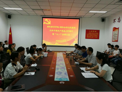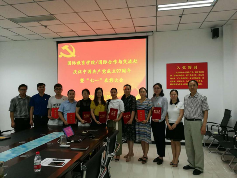 6月29日下午,国际教育学院/国际合作与交流处在图书馆527会议室举行庆祝中国共产党成立97周年暨“七一”表彰大会。国际教育学院党委书记孙永杰同志,学院党委副书记韩云涛同志,学院副院长、国际处副处长于增环同志,国际学院副院长、国际处副处长李晓同志出席会议。国际学院、国际处全体教工党员,学生党员代表党员干部参加会议。会议由韩云涛同志主持。